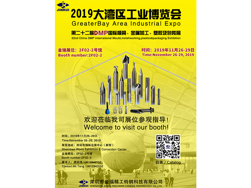 2019.11月26日-29日“2019大灣區工業博覽會”,深圳金瑞精工鎢鋼科技有限公司2F02-2館,歡迎蒞臨我司展位參觀指導